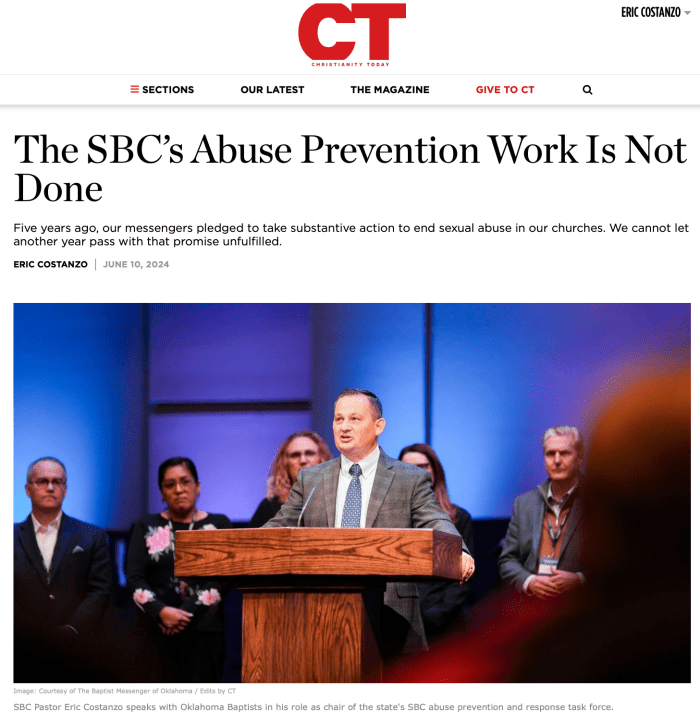 On Sunday, 5/22/2022, Guidepost Solutions released the full report of their independent investigation of the Southern Baptist Convention (SBC) Executive Committee and audit of the Credentials Committee. Their findings revealed both shameful actions and inaction by SBC leaders at the executive level, as well as at the entity, local church, and personal levels with regard to acts … Continue reading Failing to Protect Christ’s Sheep – my piece in USA Today and interview with Tulsa World